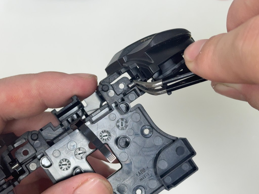 7.使用翹棒將手把進行開殼(插入後往上撬開),開殼之後 請慢慢將上蓋跟下蓋分離(有排線不要硬扯)
