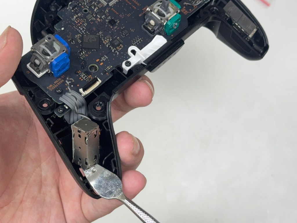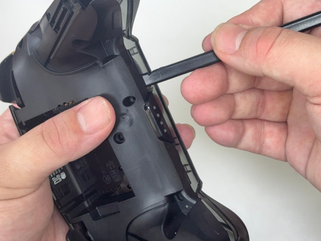 7.使用翹棒將手把進行開殼(插入後往上撬開),開殼之後 請慢慢將上蓋跟下蓋分離(有排線不要硬扯)