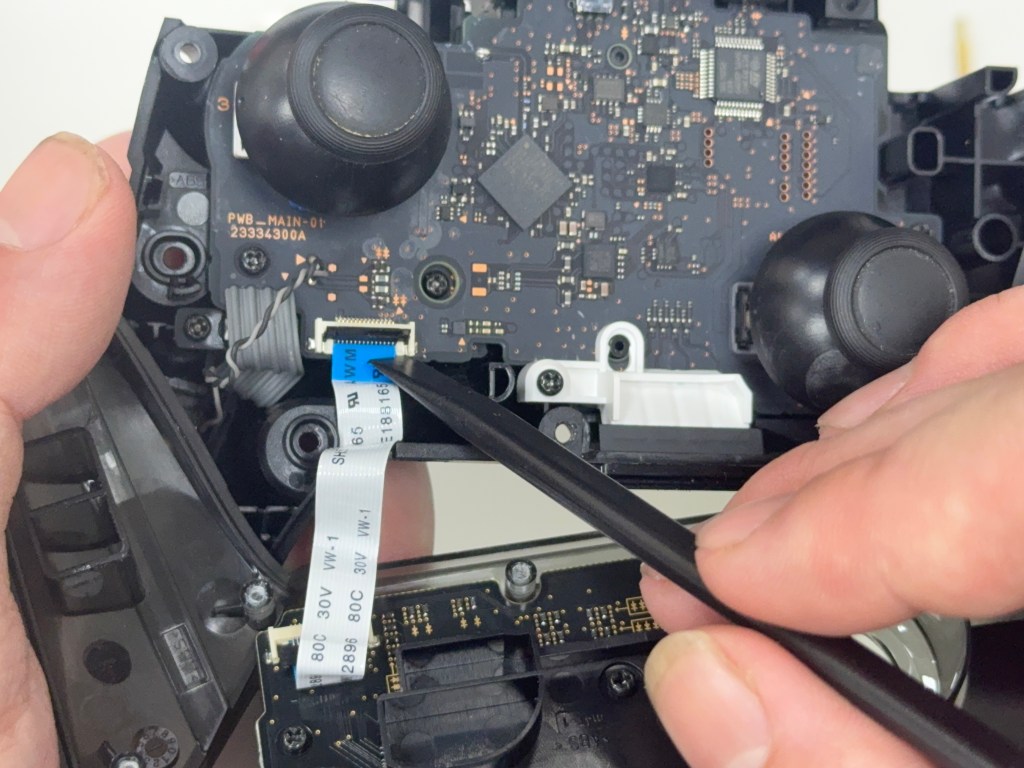8.用翹棒將排線座的蓋子打開(請小力往上推) 然後就可以拔排線取出來(但不要扯)