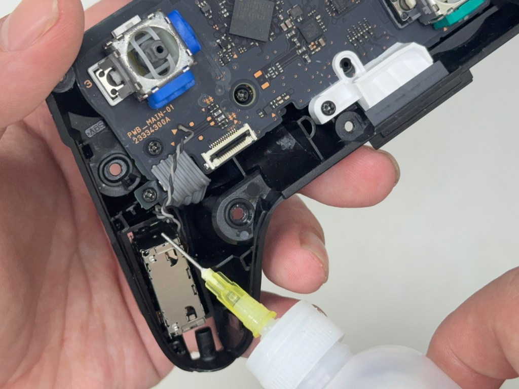 10.滴一些工業用酒精(95%至99%) 在馬達的前端處,讓酒精對雙面膠進行解膠