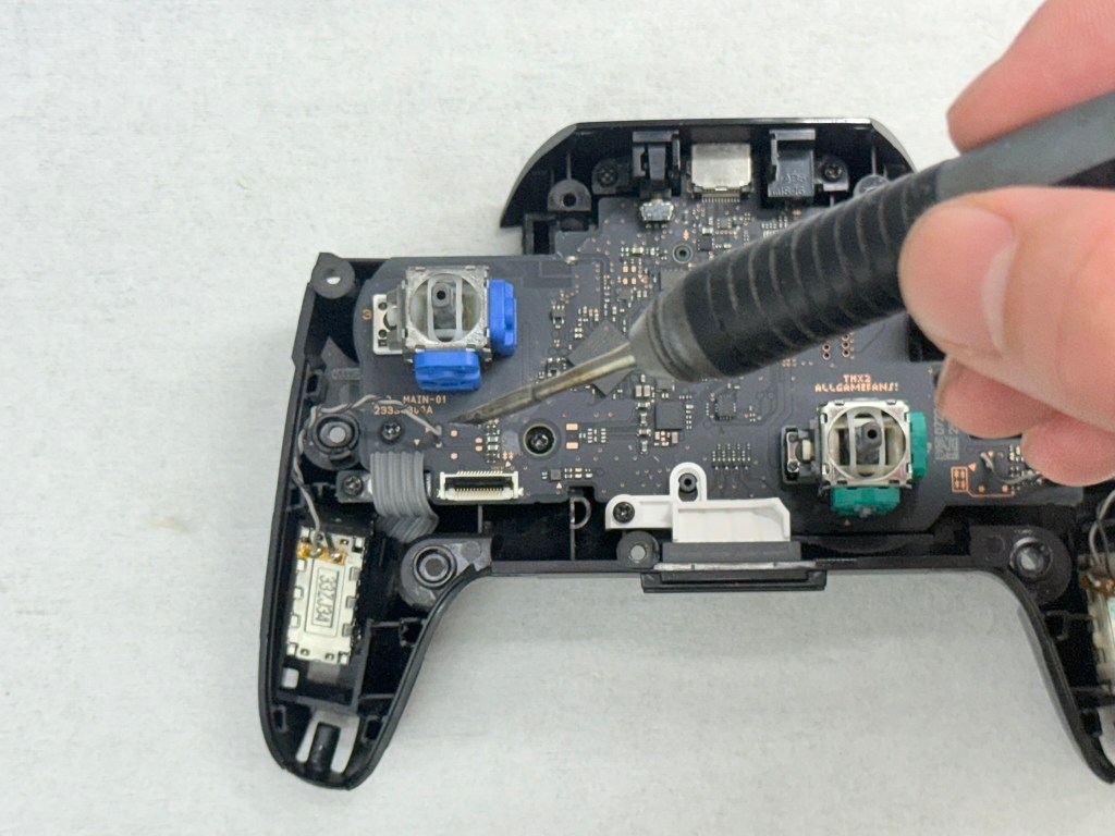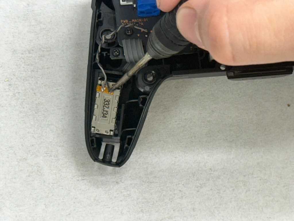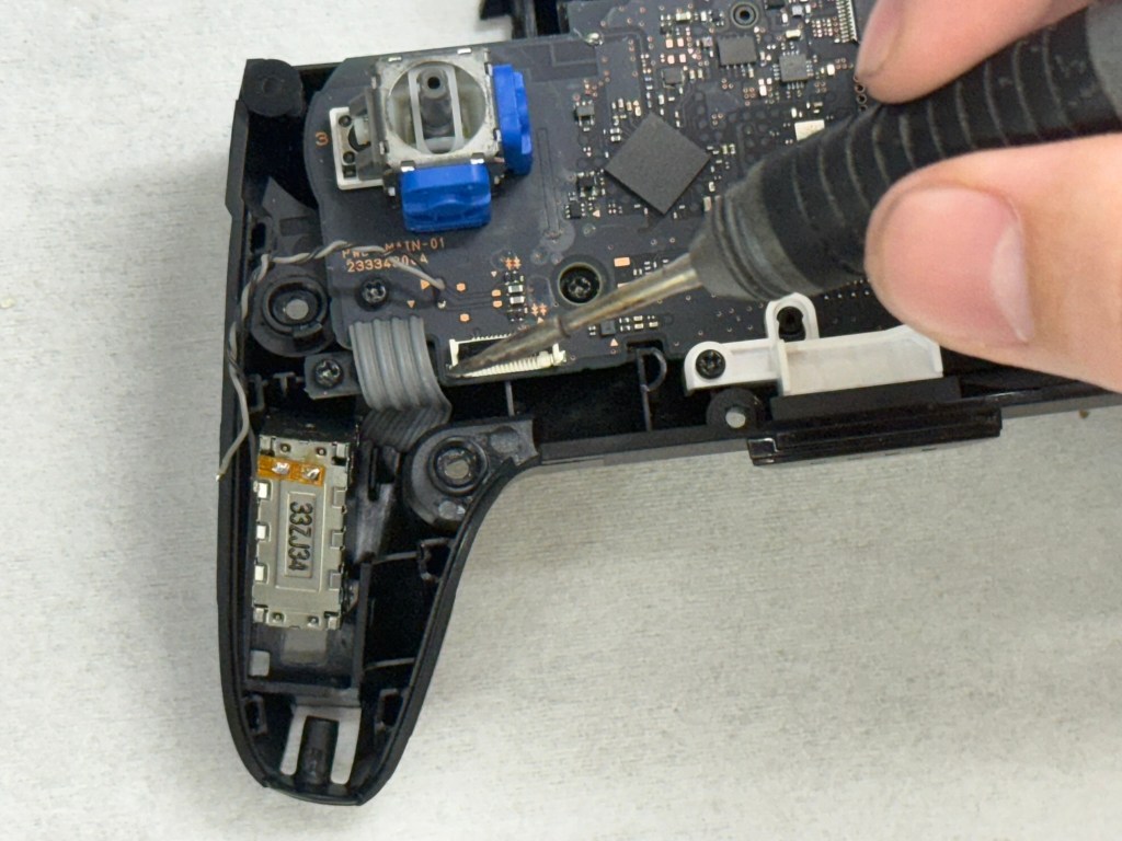 7.使用翹棒將手把進行開殼(插入後往上撬開),開殼之後 請慢慢將上蓋跟下蓋分離(有排線不要硬扯)