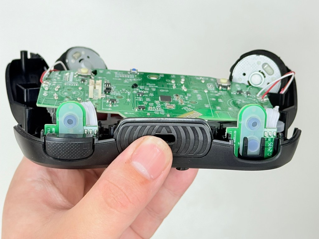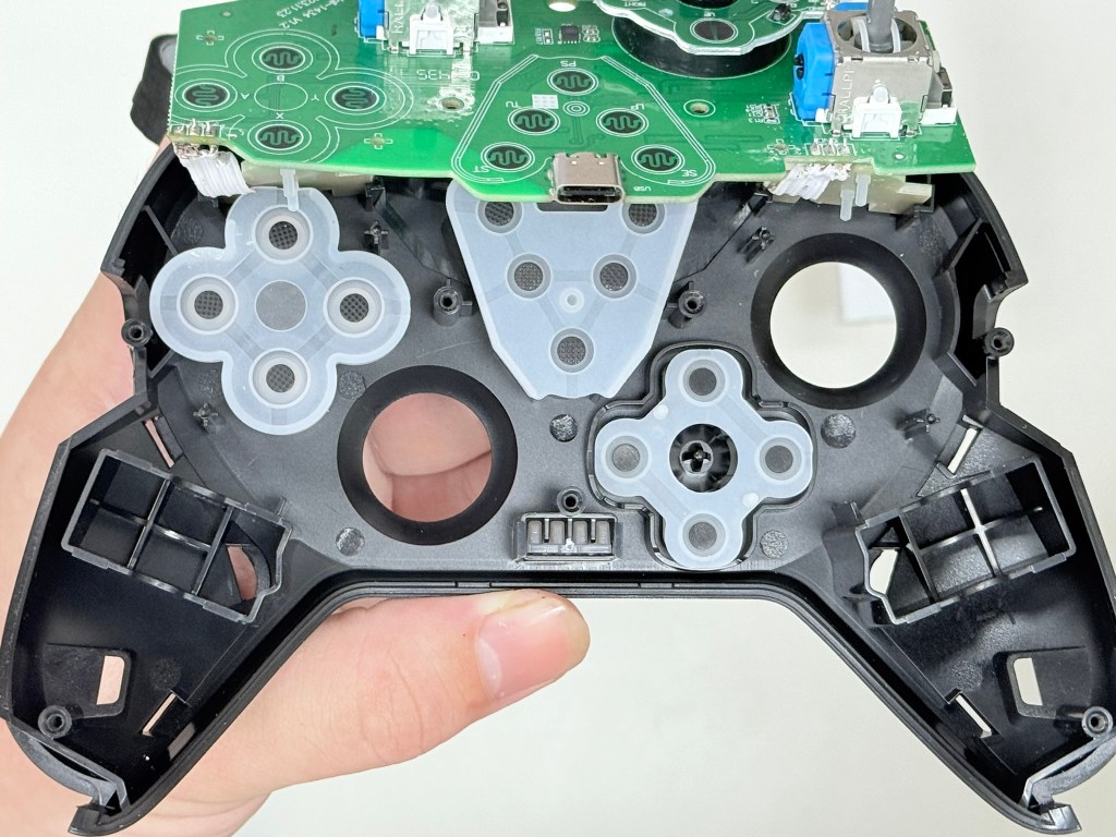 10.慢慢地將主板翻過來(不然太大力會把連接的排線給扯斷 這樣就焊接了) ,按鍵膠墊的部分是特製的 跟外面主留手把 並不相同 不能通用。
