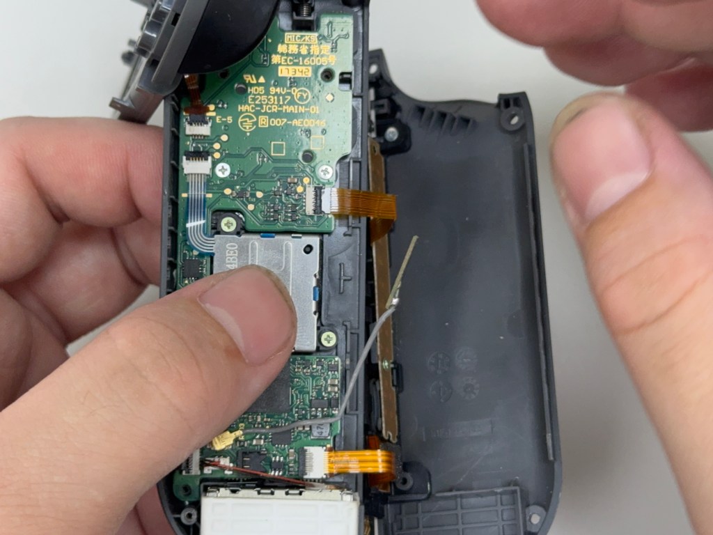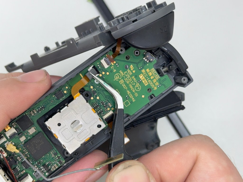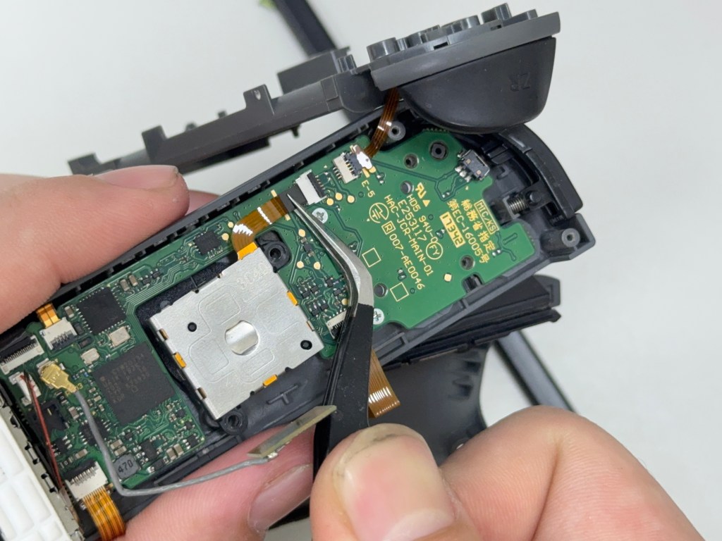 12.先用鑷子將類比(搖桿)排線插入排線座內 (請這邊注意再插入的時候 不要折到排線)
