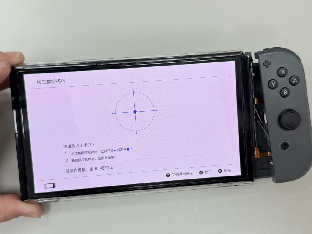 14.換好之後,先不用組裝,先用滑軌接上Switch(這樣是可以讓主機正常辨識),然後先將搖桿進行校正