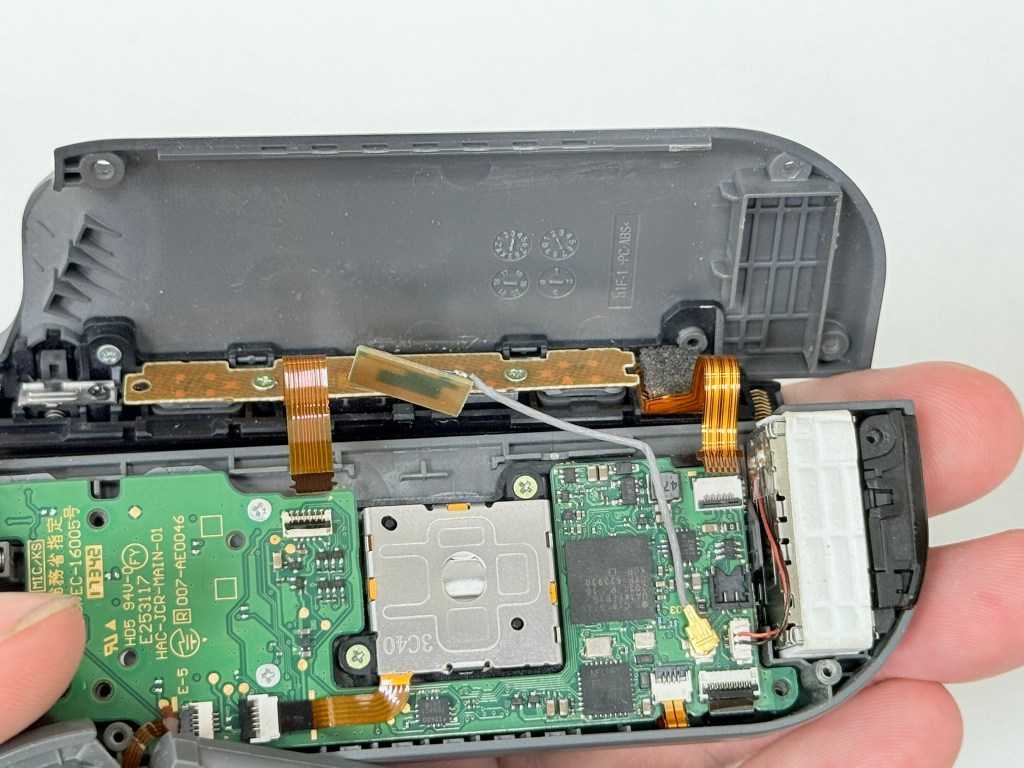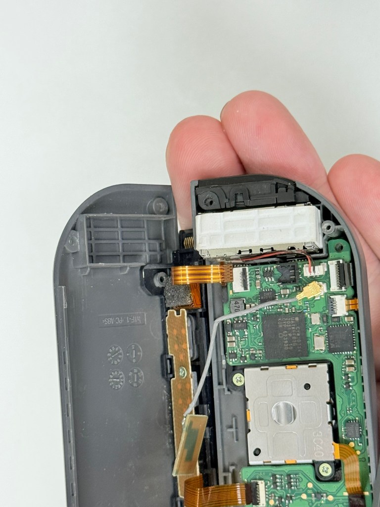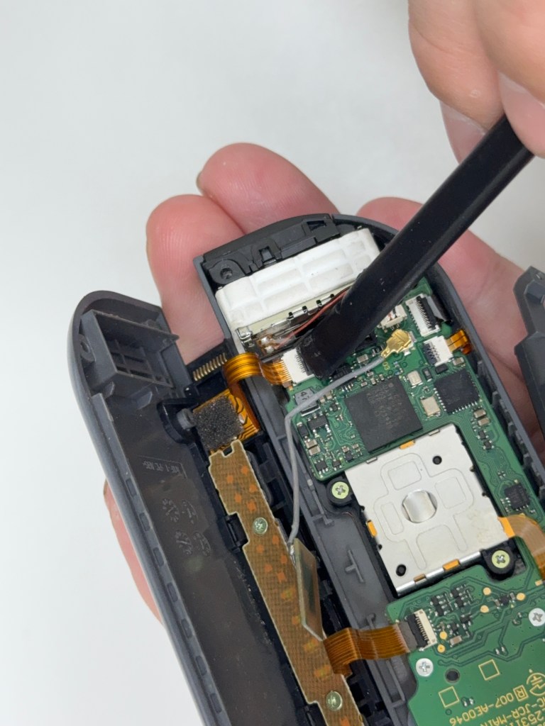 9.用翹棒或鑷子(小心地把排線座的蓋子給打開)要取出搖桿的排線