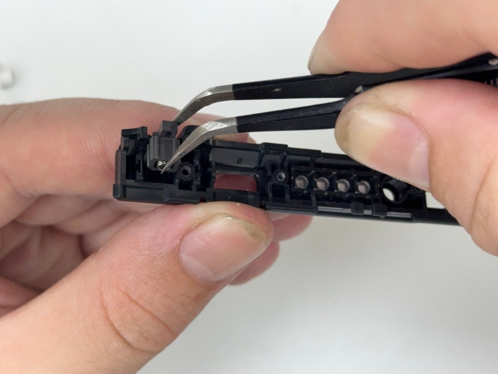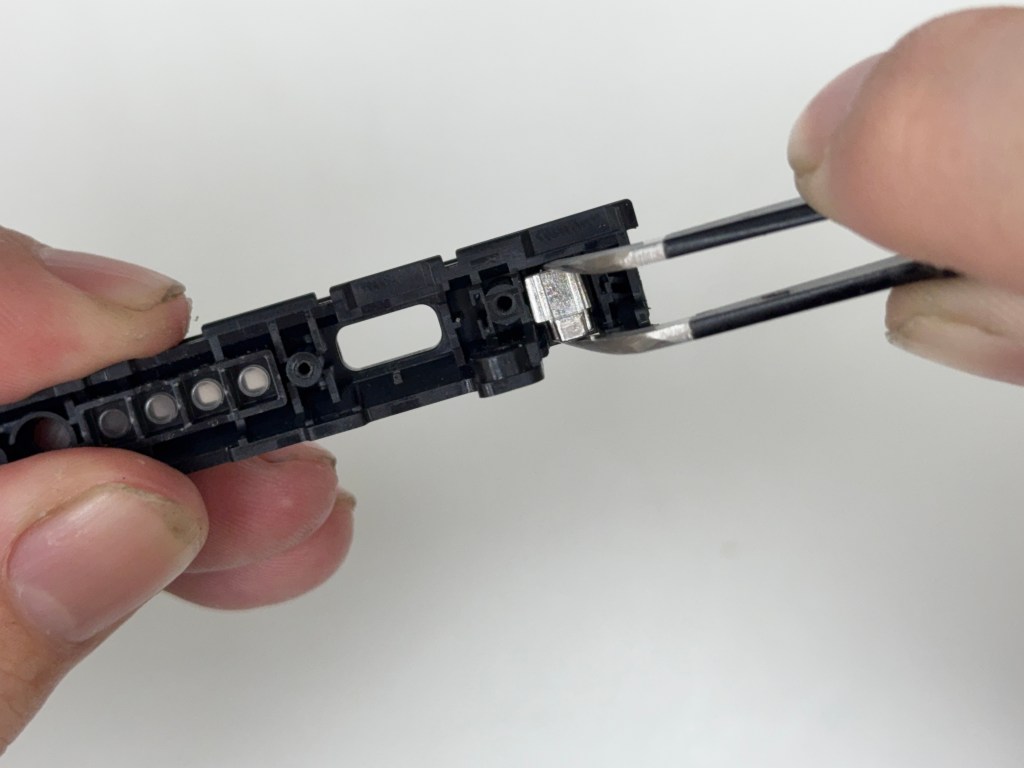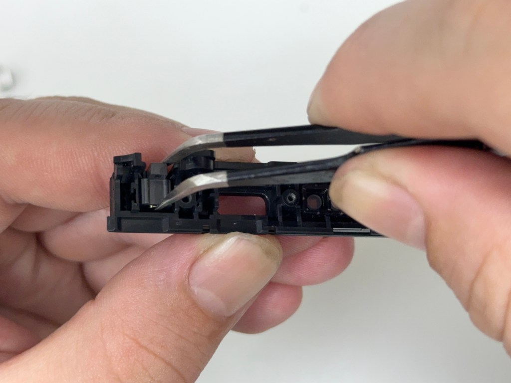 14.用鑷子將 卡扣 以及 卡扣彈簧 夾起來(這邊請夾好之後,確定夾穩固) 麻煩垂直往上就可以起來了(請注意 絕對不能突然放開夾子 不然 彈簧一飛掉 就不好找了)