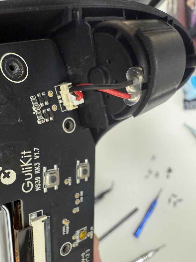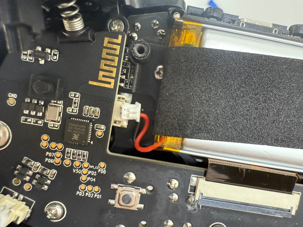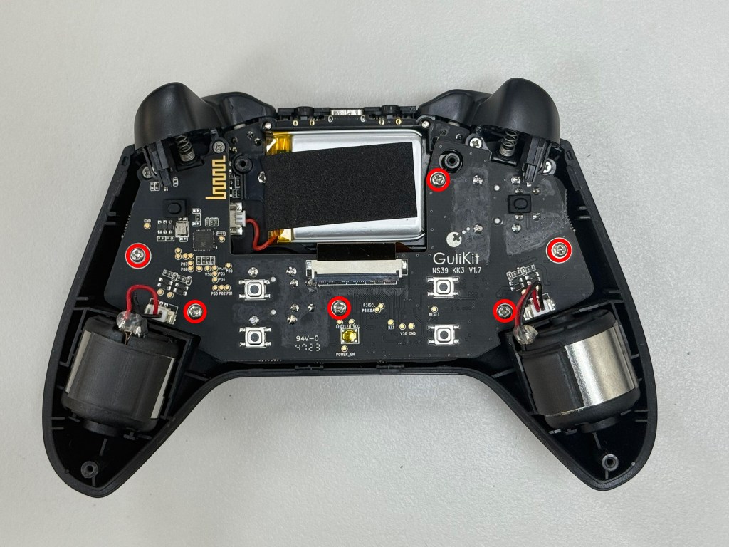 3.先把電池取下來 它的電壓 容量 被海綿貼住了 我就不撕開 我之前有其他拆解過谷粒的手把 看外觀上來說應該是用同一顆