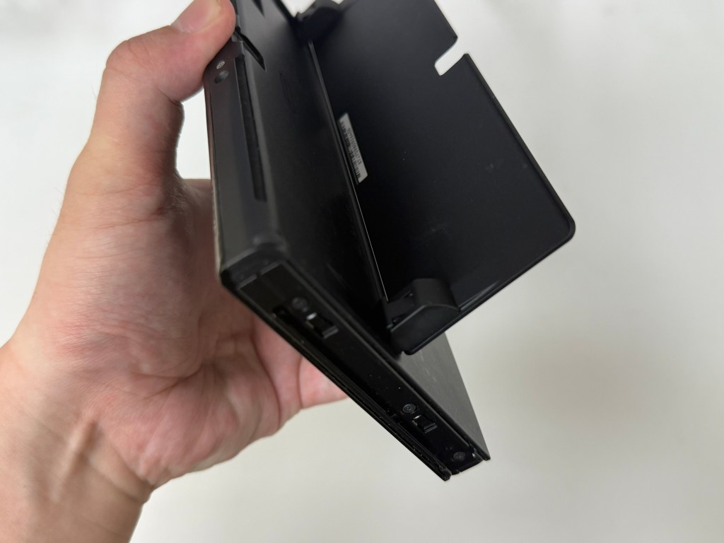 Switch 電力加強版的 背蓋支架 小小一塊,而且也很容易不小心扳一扳 就斷掉了