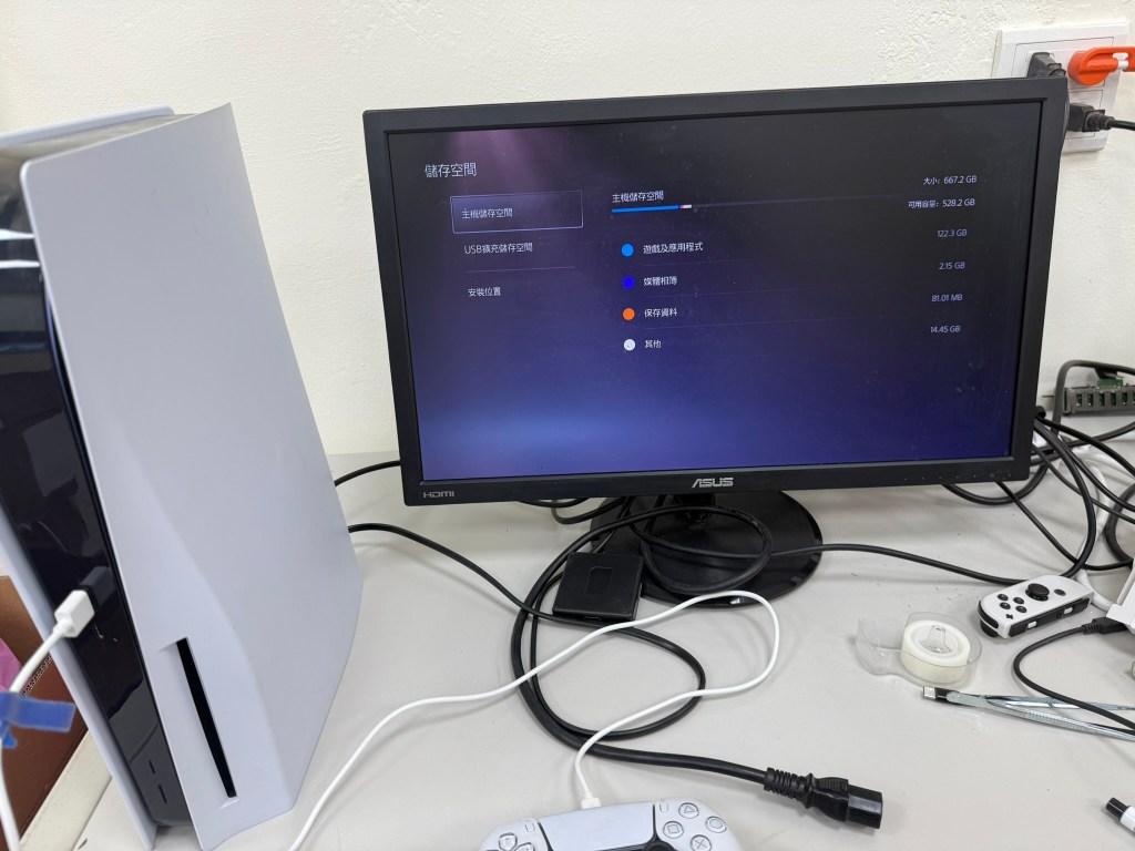 PS5 初代主機 外包裝寫的儲存容量是 825GB,實際會因為系統計算完之後 實際可用容量只有 667.2GB