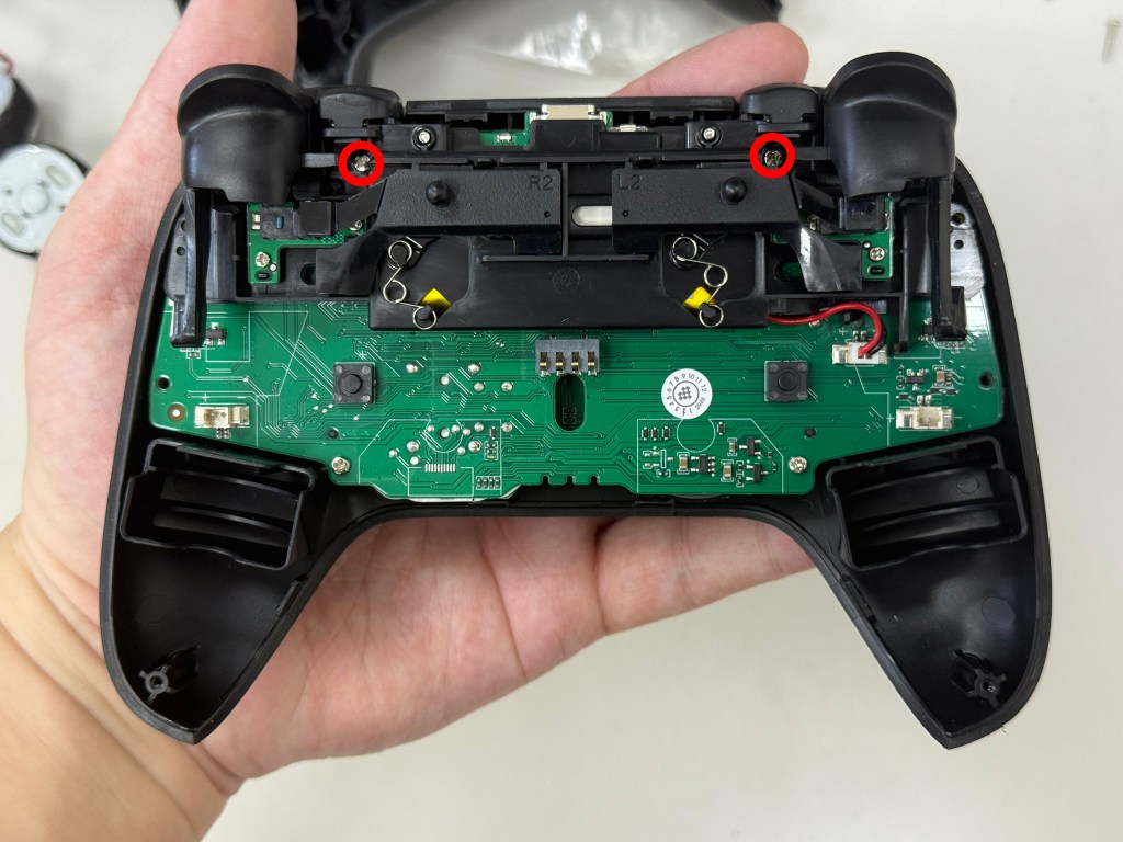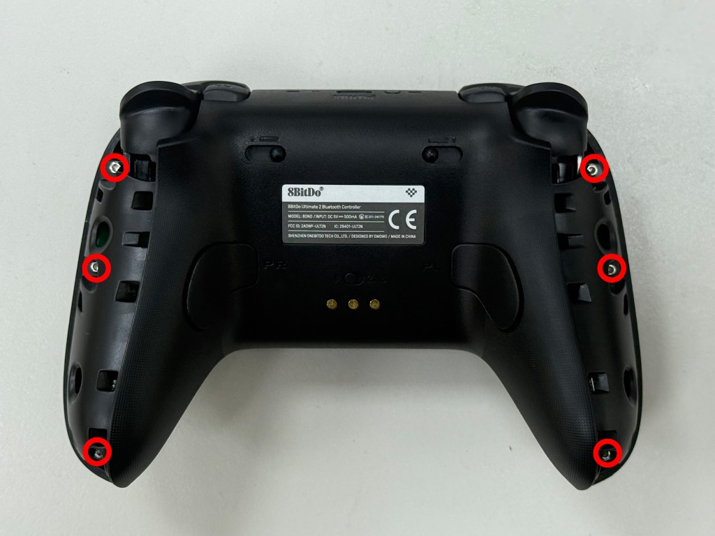 2.先將背部的握把處的6顆六角螺絲取下來(用六角 T5 或者 六角 T6的螺絲起子)