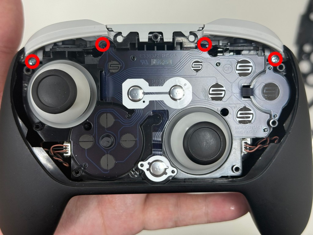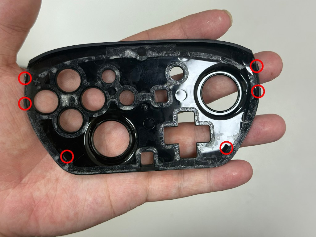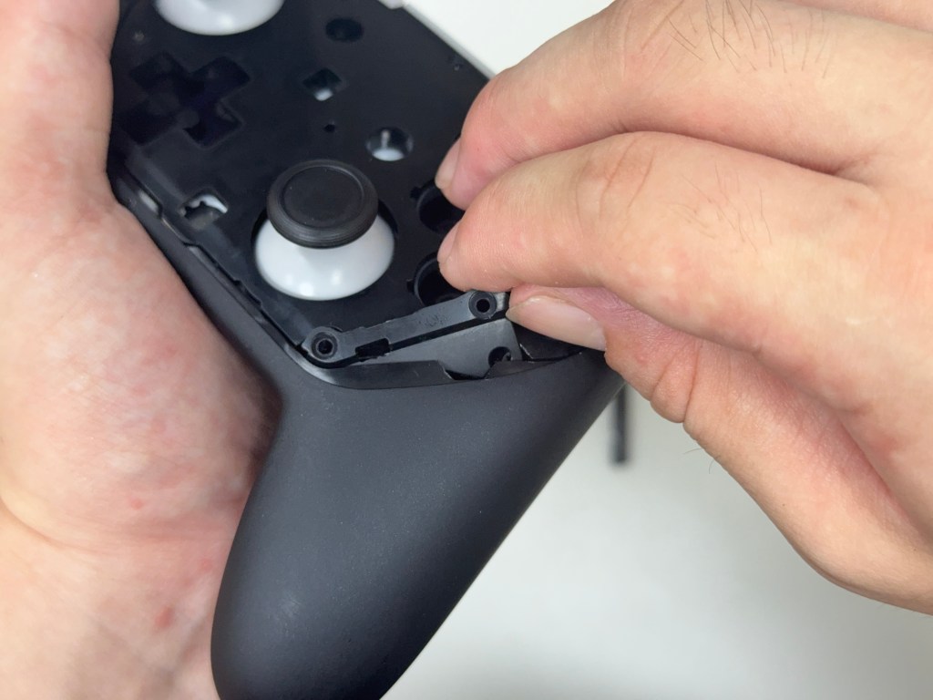 8.L跟 ZR鍵最左側接縫處有1顆十字螺絲 而R跟ZR鍵最右側接縫處有1顆十字螺絲要取下來(用十字 1.5 或者 十字 2.0的螺絲起子)