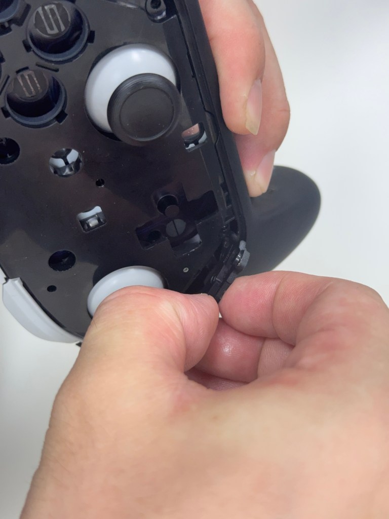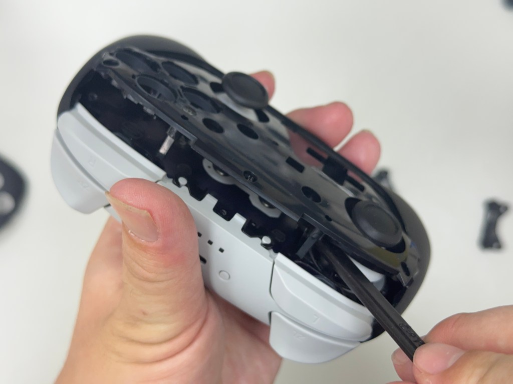 再來就是 L按鍵 跟 R按鍵取下來的時候,捏住最尾端 然後用推的推出來 慢慢推