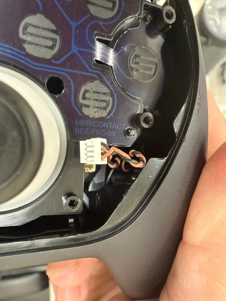 13.把左右兩側的馬達排線取下來,這次的馬達不再是用 焊接的方式 而是改成用插排線的。 只是 馬達跟 背鍵是共用一個排線
