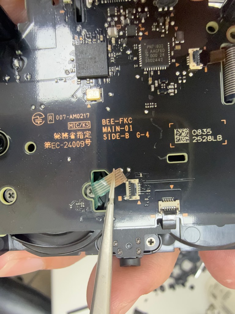 輕輕地拉住 NFC線圈的排線那一節,把它提起來之後 用翹棒把另外一邊給提起來 就可以取出來了