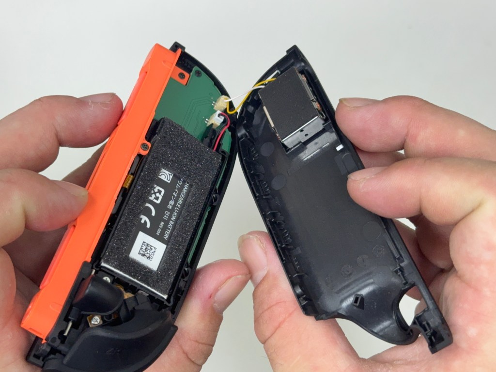 7.取下電池槽以及 R鍵跟 ZR鍵(一體的),慢慢地取下,有連接著排線 避免把排線給扯斷