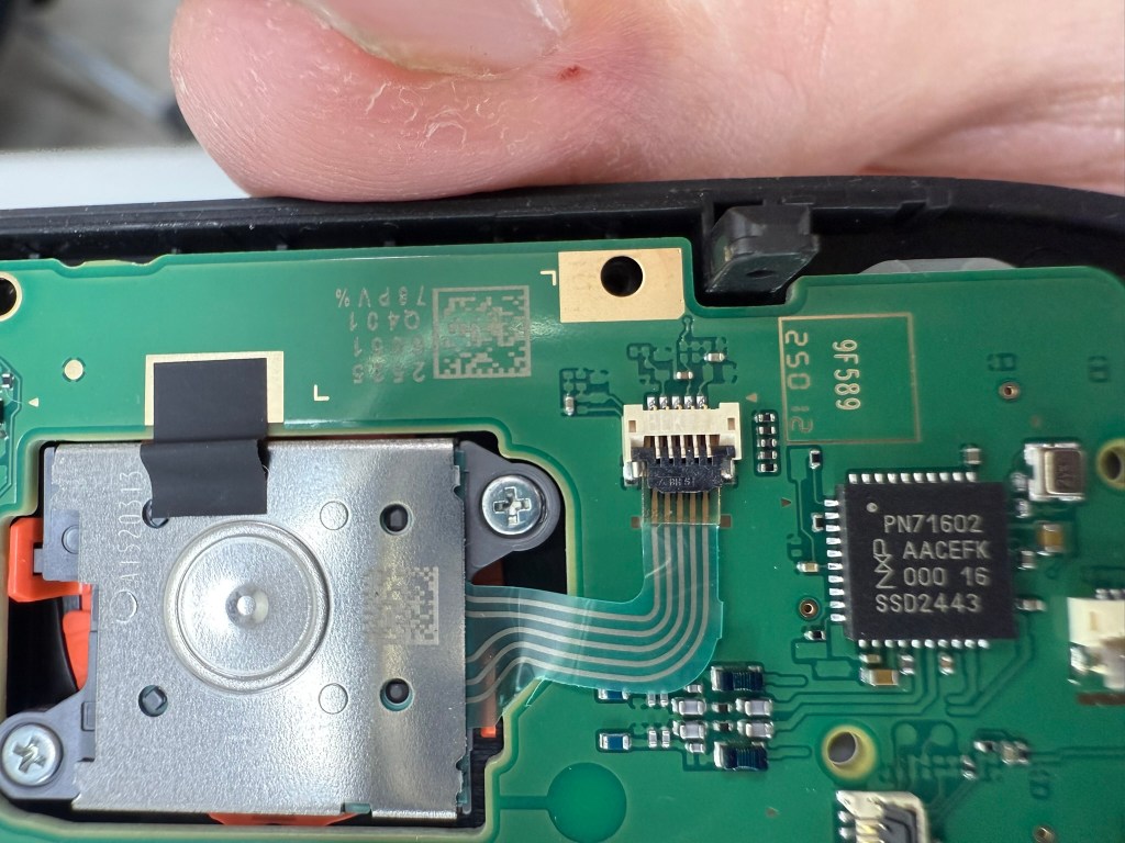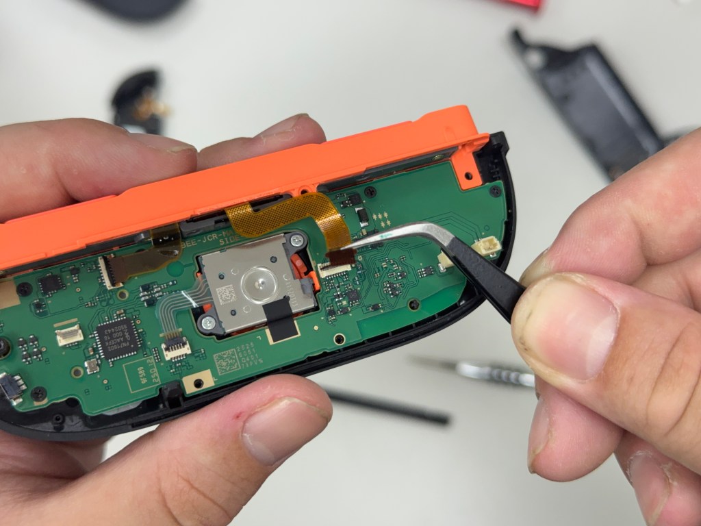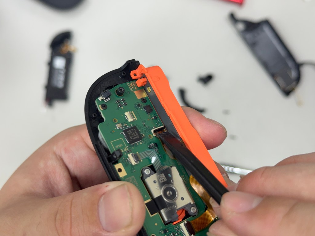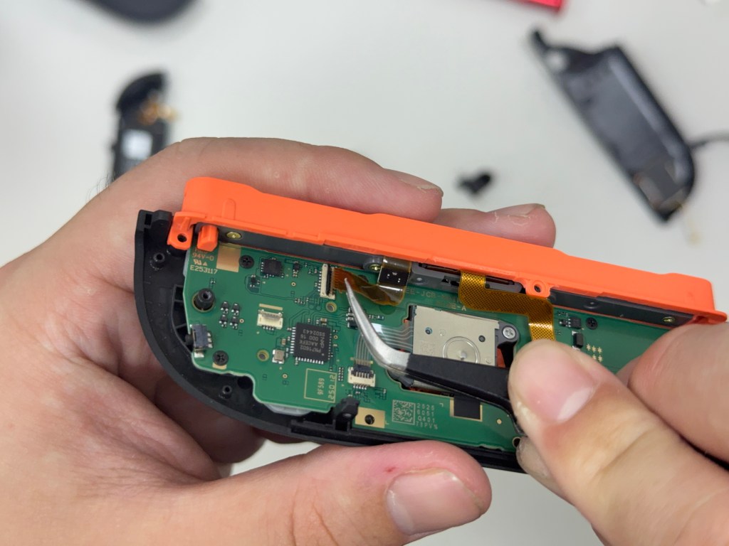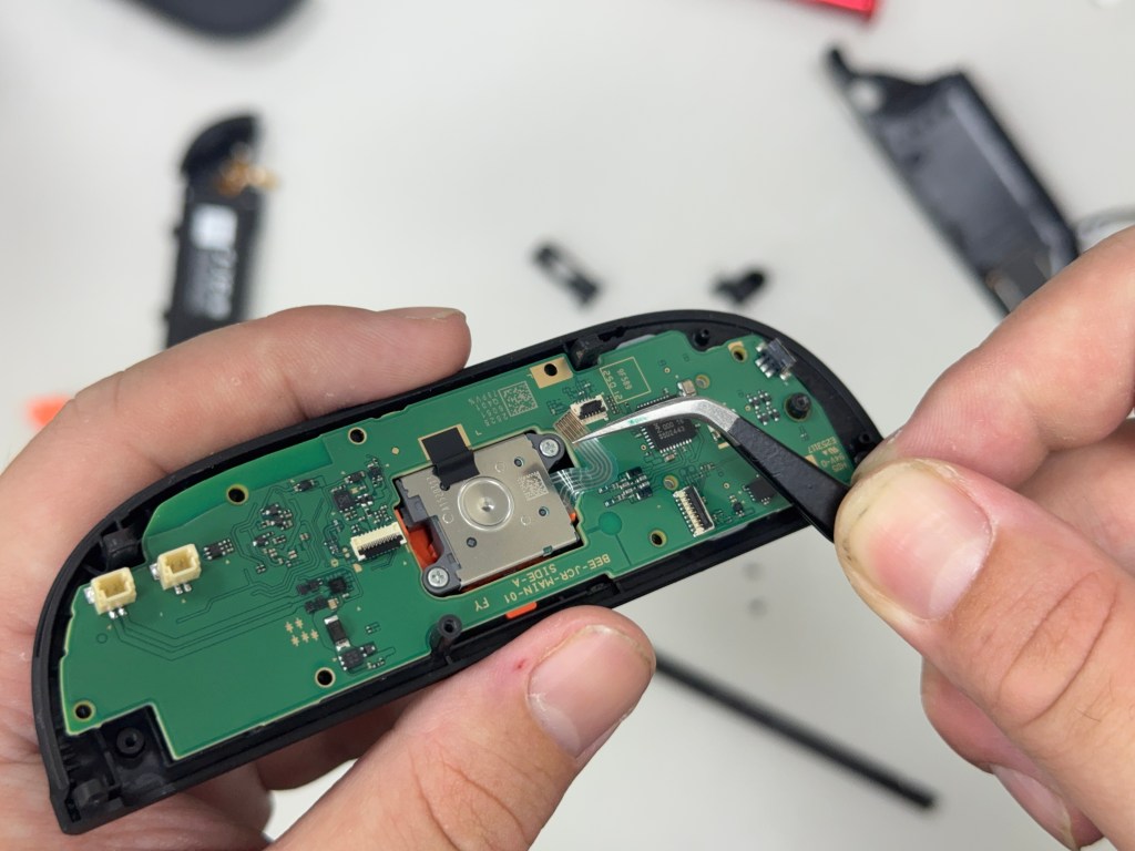 10.取下搖桿,一樣用翹棒打開排線座(請小力),再用鑷子夾出排線