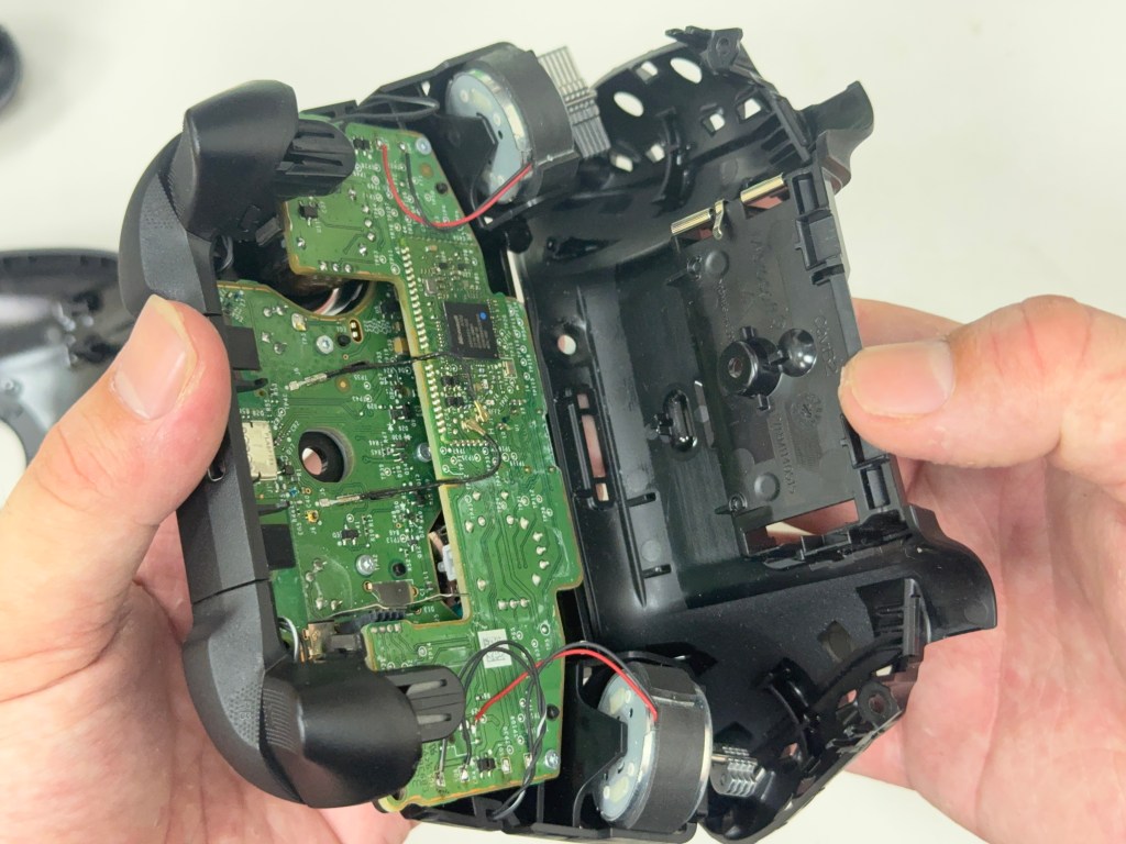 跟 任天堂 還有 索尼的手把對比,微軟他們家的手把 在 L2 R2的位置 還有各多一顆馬達,這部分設計是在 2013年 XBOX ONE手把的就有了,所以沿用至今。 但L2 R2局部的 震動效果 確實會讓人有更好的體驗感。
