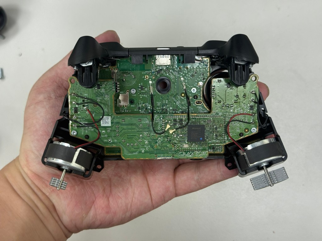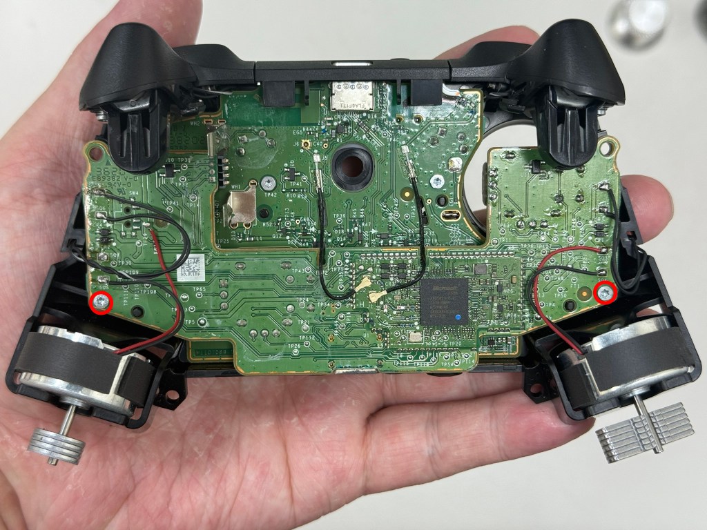 4.XBOX馬達 分別是左右下緣的兩顆馬達,基本上 XBOX他們家 馬達是採用傳統震動馬達(轉子馬達),左邊的馬達 鐵片較多 而右邊馬達鐵片較少 這樣就會有非對稱的震動感。