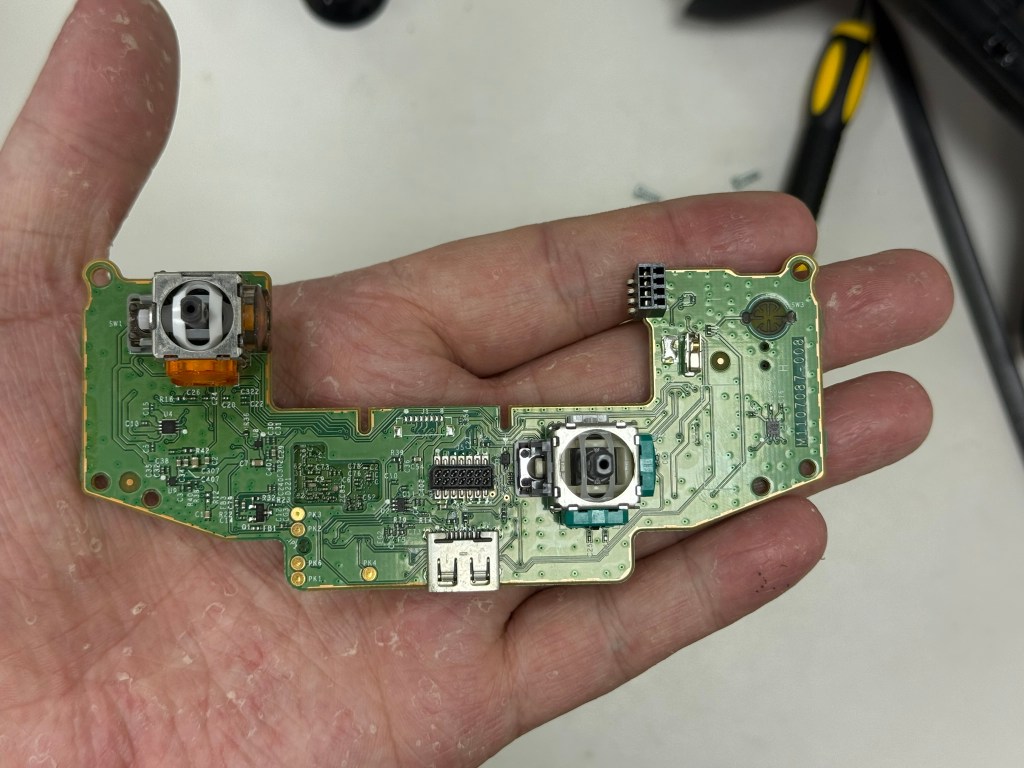 左搖桿橘色的是 我自己換成 TMR搖桿 來做測試用的(測試 磁阻效應 跟 霍爾板機 會不會因為 永磁體 相斥的問題 導致 有偏移,事實證明 按壓 LT之後 確實會導致搖桿上的訊號有偏移 但還在搖桿的死區範圍內 所以並不影響遊戲體驗,但如果覺得不想要看到這樣的訊號 就是換成 碳膜搖桿)