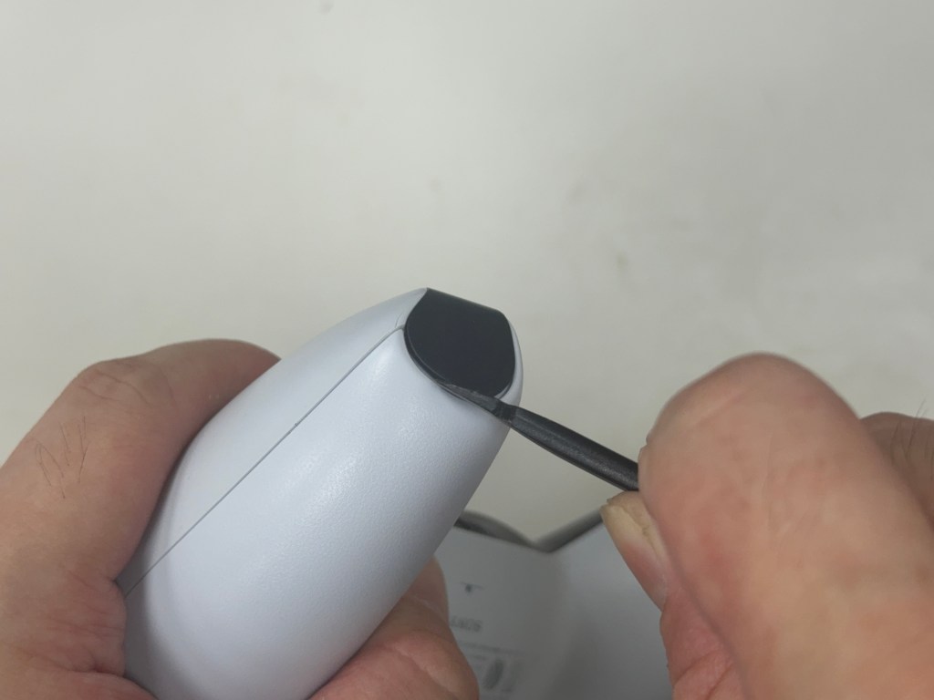 4.這兩個卡榫要撬開才能分離上蓋跟下蓋,從左右任一邊 先稍微分離上下然後用翹棒去稍微推開卡榫的位置,讓一個卡榫分離掉,再用翹棒一樣稍微推開就可以了
