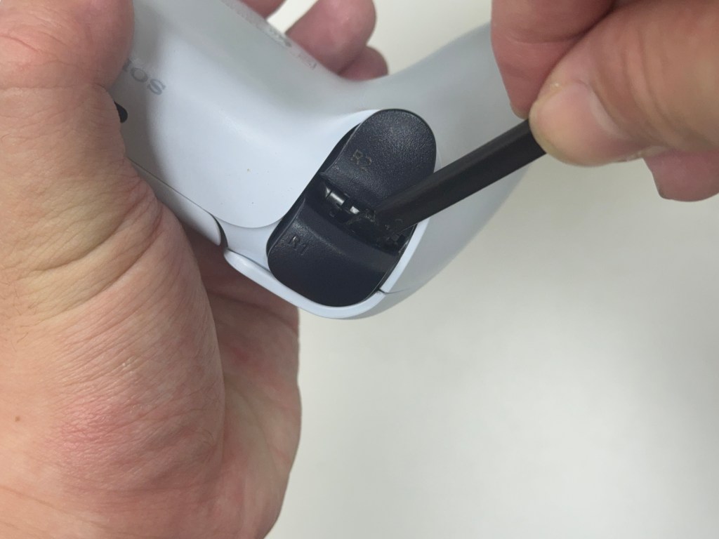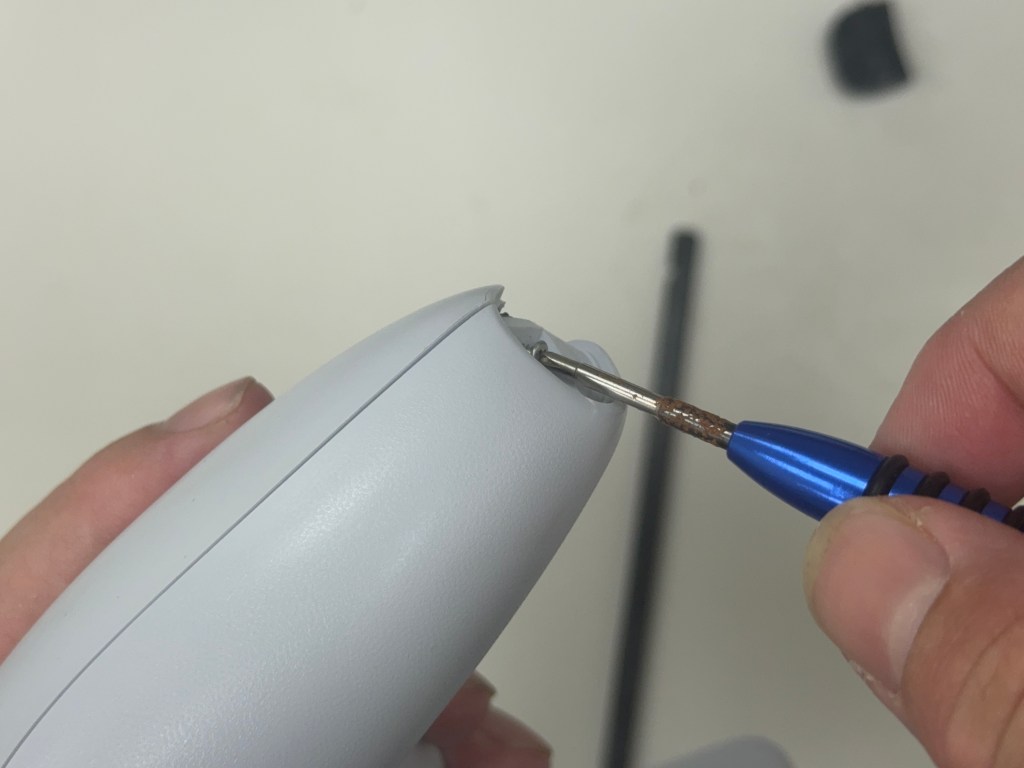 2.再用翹棒插入 R1 跟 R2 縫隙中,然後向外推出來 就可以了(裡面也有藏著十字螺絲