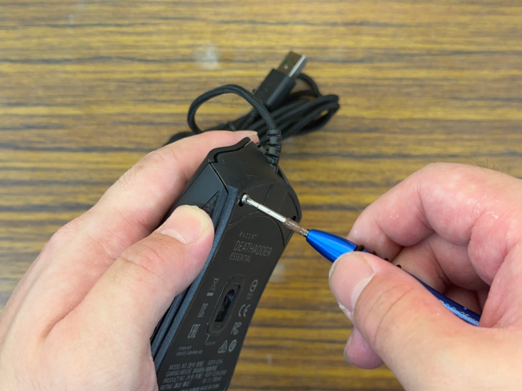 1.先用吹風機 將底部 腳墊 給吹熱 讓膠跟 滑鼠分離開(主要是螺絲藏在下面)