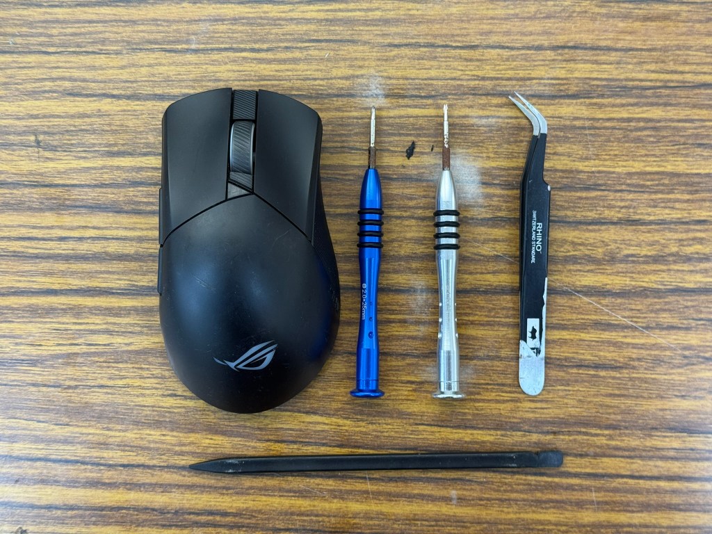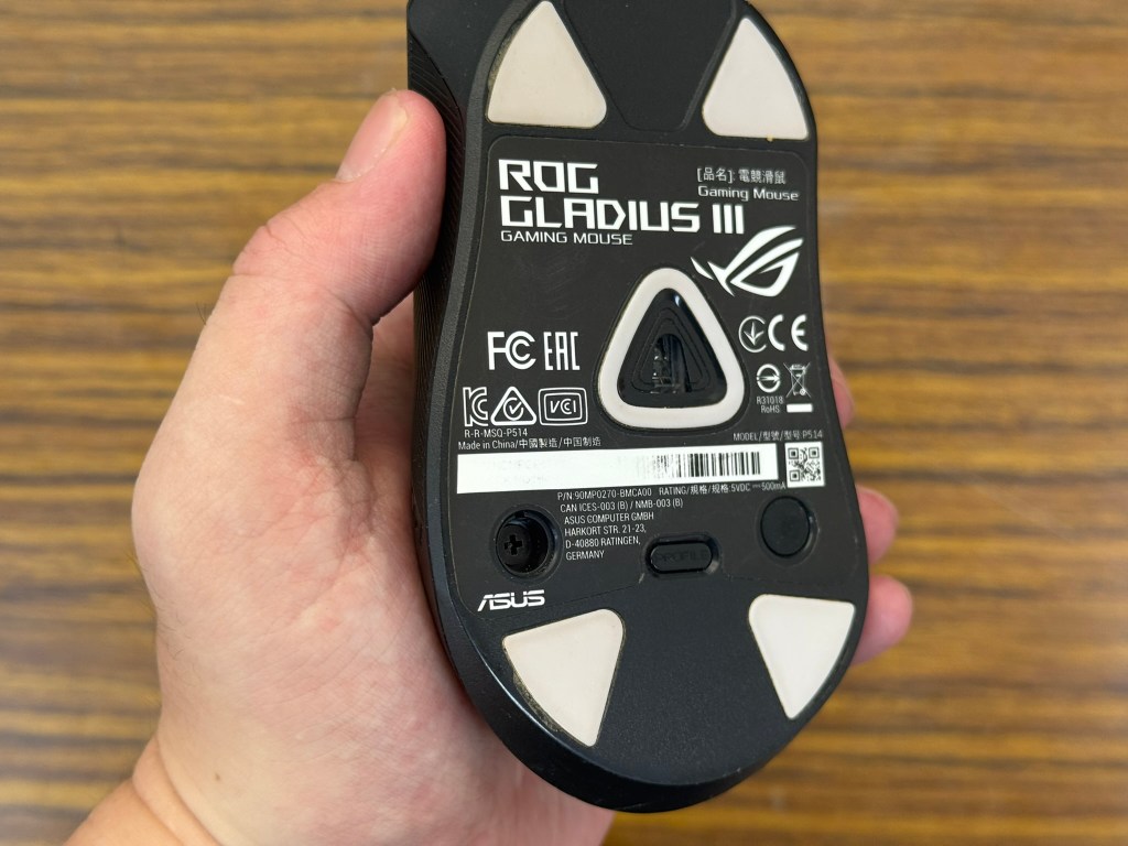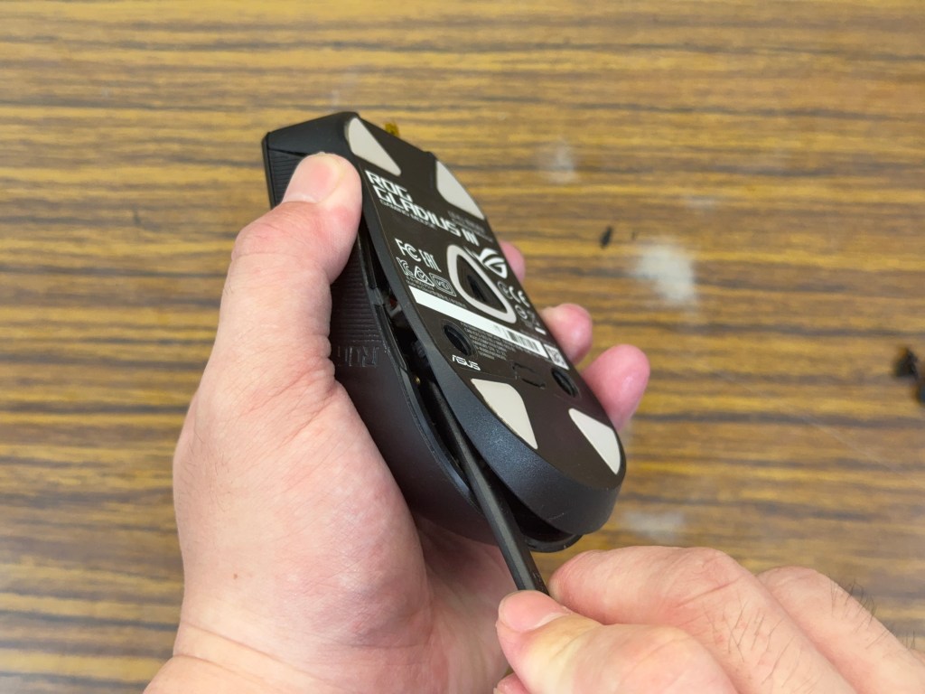 1.ROG的滑鼠 他的螺絲基本上 就藏在矽膠塞下面 所以矽膠塞拿起來就會看到了